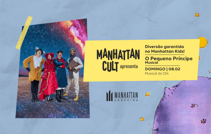 As férias em Águas Claras ficaram ainda mais divertidas! No domingo, dia 08 de fevereiro às 15h, o Manhattan Kids traz o musical de “O Pequeno Príncipe” na programação especial de férias. Durante os dias de apresentação, o shopping promove distribuição gratuita de pipoca, tornando a experiência ainda mais lúdica para a criançada.
